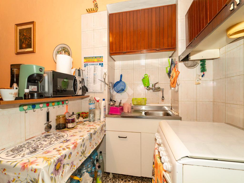 L’appartamento è situato al piano rialzato di uno stabile ben tenuto nelle parti comuni, in un contesto ordinato e tranquillo. L’ingresso si apre su un’ampia zona giorno con angolo cottura e balcone che affaccia sul cortile.