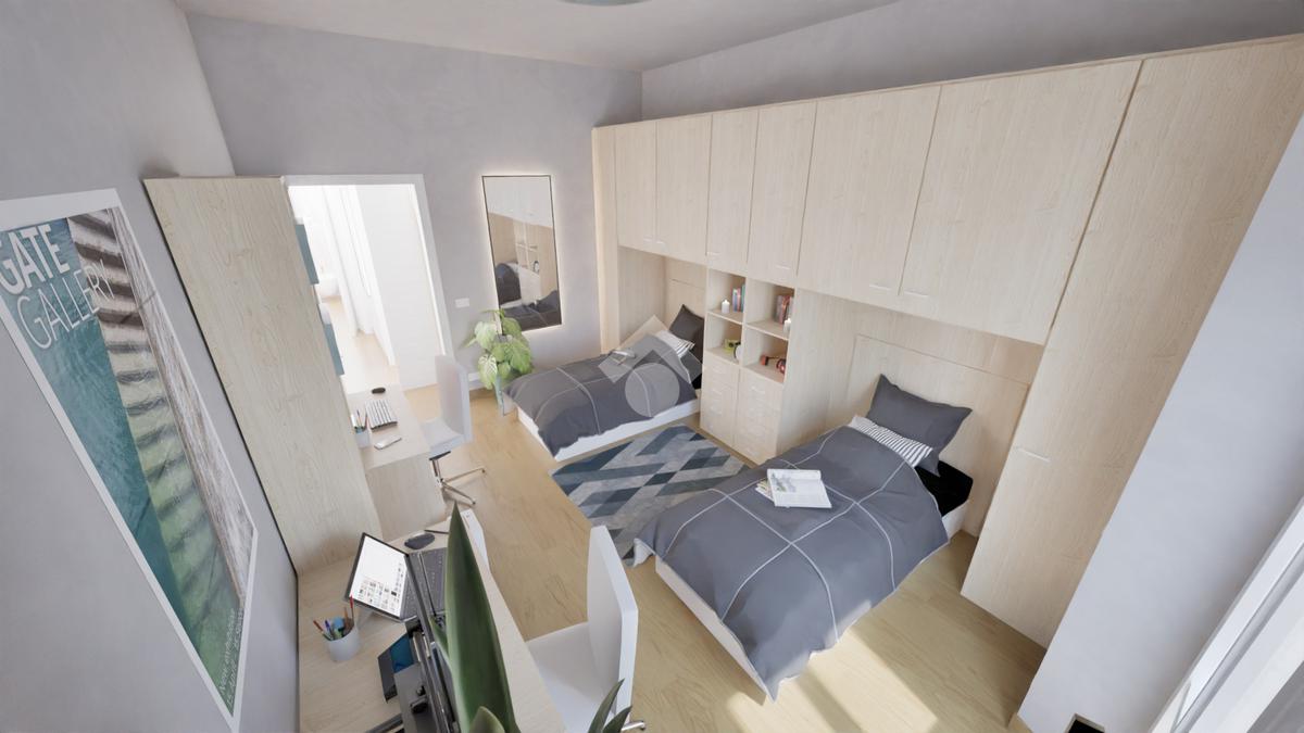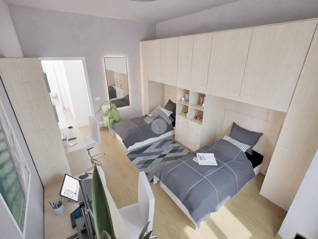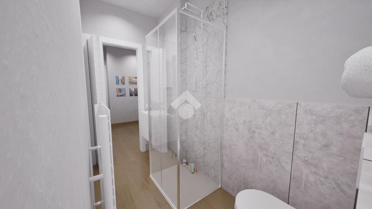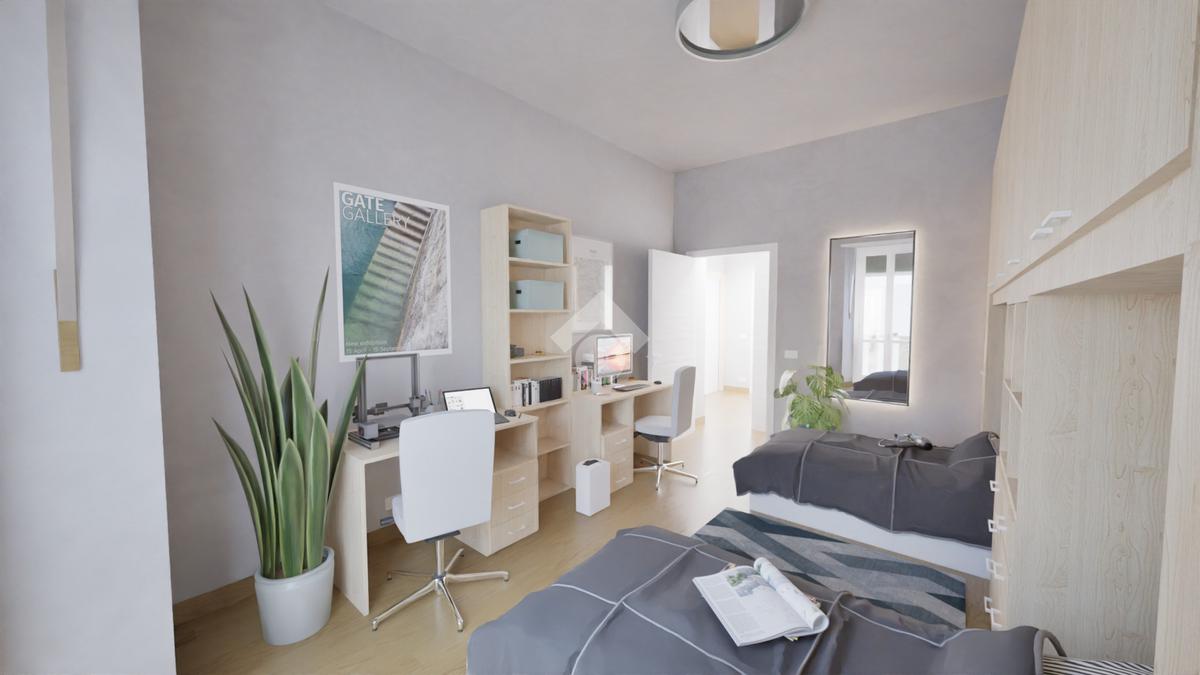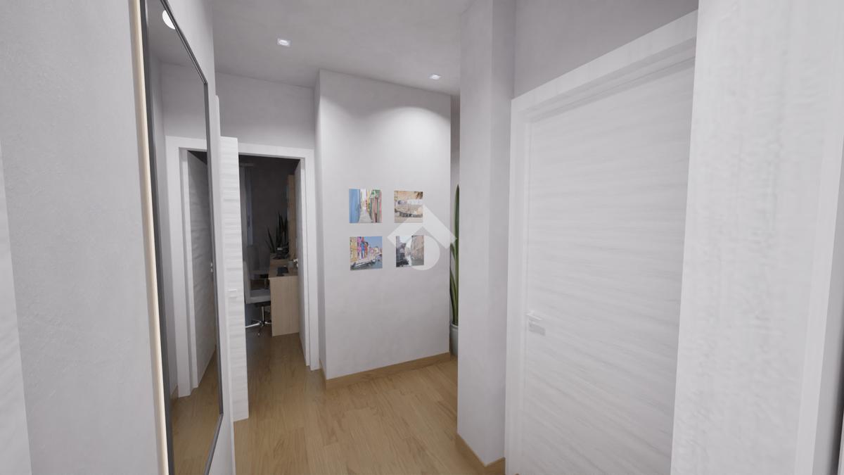 L’appartamento sarà consegnato completamente ristrutturato, con rifacimento degli impianti elettrico e idraulico, pavimentazione in SPC effetto rovere, infissi in PVC con doppio vetro e serrande elettriche, oltre alla predisposizione per l’impianto di climatizzazione. Anche le parti esterne verranno valorizzate con la ritinteggiatura dei balconi, mentre all’interno la zona giorno e l’ingresso saranno arricchiti da controsoffitti con faretti.
